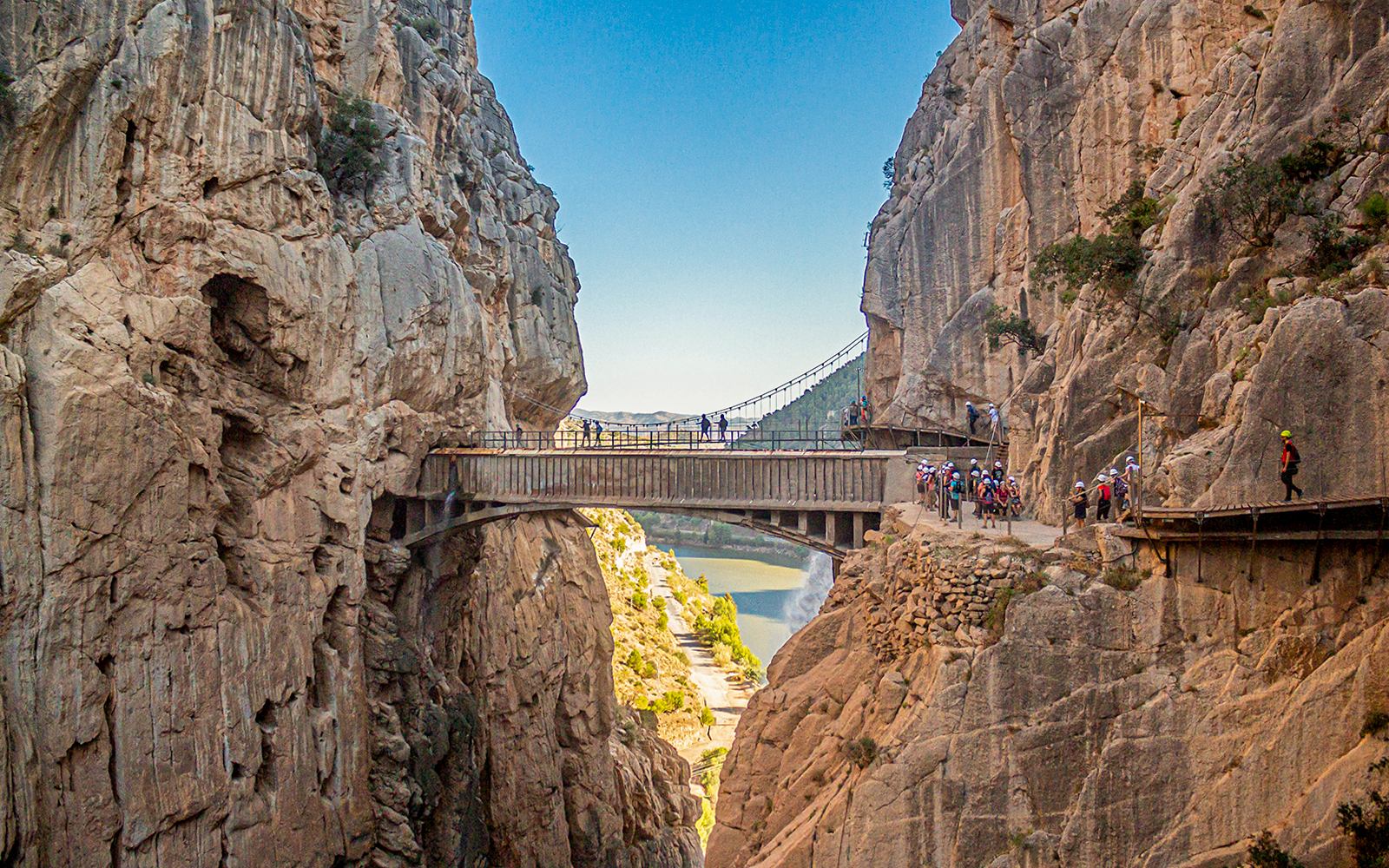 La forma más fácil de llegar al Caminito del Rey desde Málaga, Granada o Sevilla es participar en una excursión de un día con un servicio de autobús lanzadera, que se encarga de todos los detalles del transporte y te lleva directamente al Acceso Norte. Una vez allí, autobuses lanzadera conectan con lugares clave como el pueblo de El Chorro, el Centro de Visitantes ** (Entradas no disponibles aquí, comprar con antelación), y el punto de partida cerca de el restaurante El Kiosko. Las lanzaderas pasan cada 30 minutos de 8:30 a 18:00 en verano y a las 17:00 en invierno. Las Entradas cuestan 2,50 €** cada una y se pueden comprar en línea, en el quiosco de la estación de tren o en el autobús (sólo en efectivo).